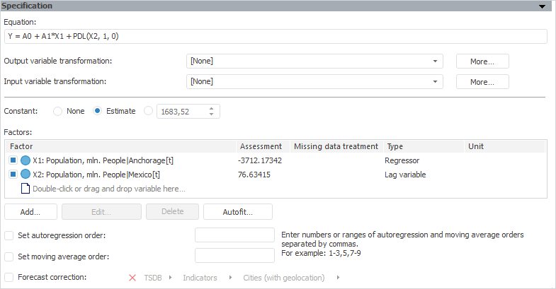 TIP. To get a model of estimated coefficient value of factor after calculation, use the Estimation column in the Factors table or the Identified Equation panel.