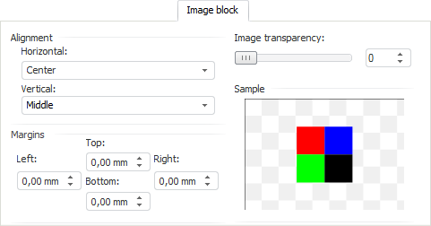 Alignment. In the corresponding drop-down lists select horizontal and vertical alignment of the image relative to object borders.
