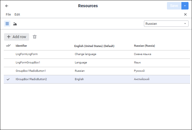 NOTE. To translate business application menu structure into different languages, use the Business Application Resources ready resource with the APPLICATION_RESOURCES identifier in the Internal Structure of Business Application folder of business application. To translate data entry form elements, use a ready resource included in object.