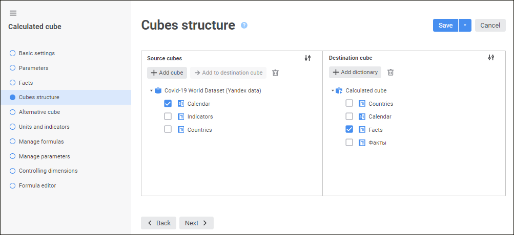 Calculated Cube. The cube enables the user to calculate the values of facts using the values of other cube facts and defined formulas: