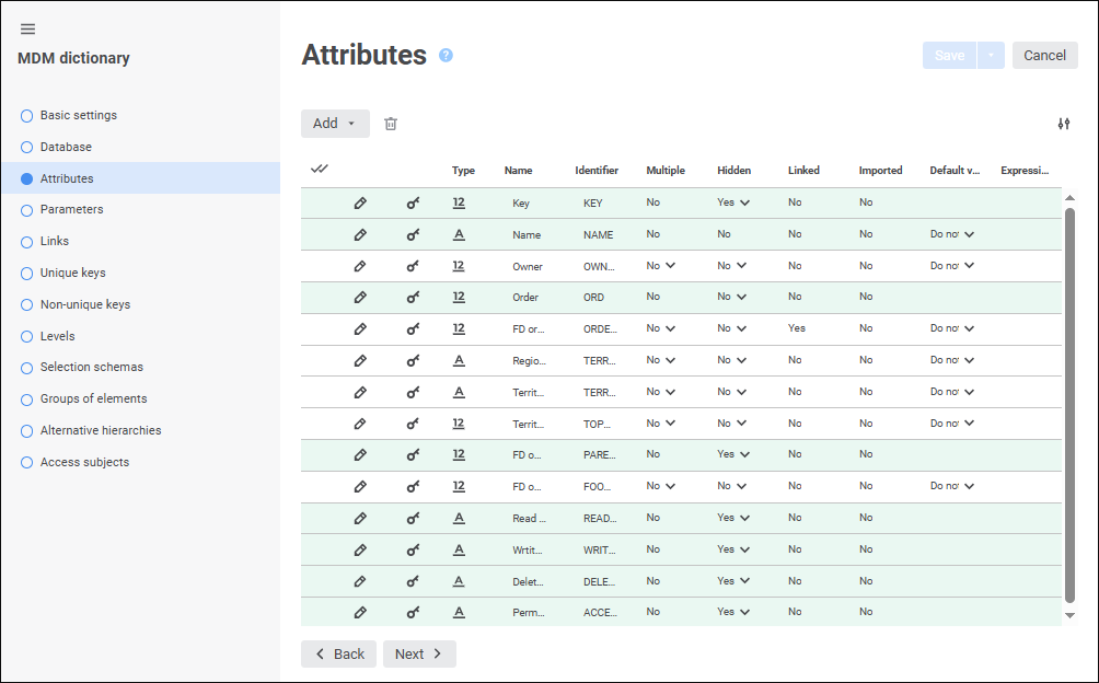 System. MDM dictionary mandatory attributes that cannot be deleted. When creating an MDM dictionary, the Attributes page already contains a minimum set of system attributes:
