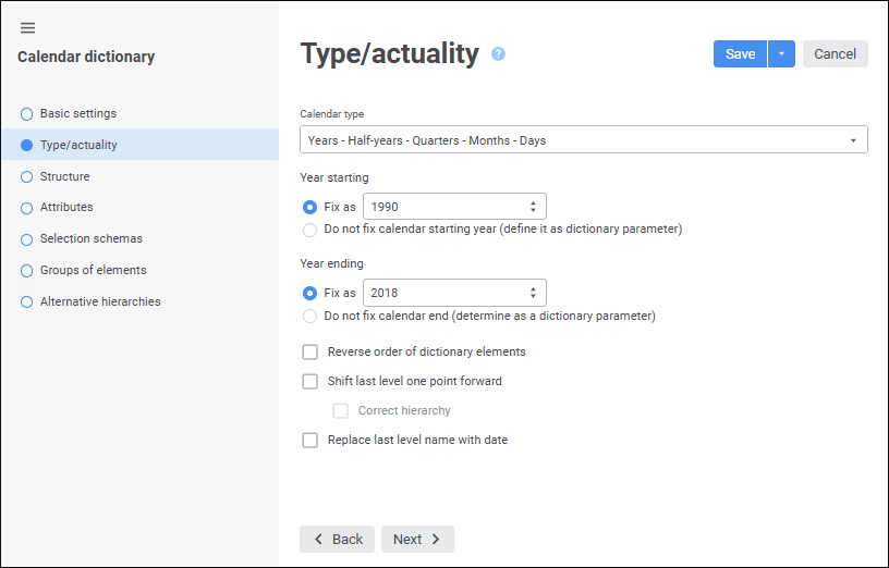 Select the Calendar Dictionary radio button on the Dictionary Type page.