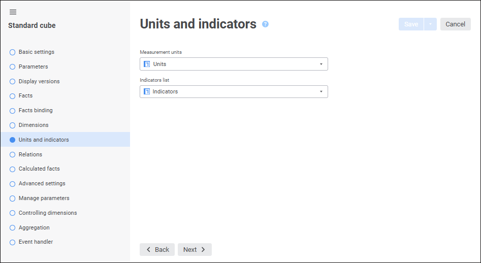 User-defined units are used to describe all indicator data when working with cubes. If it is intended to work with indicators presented in different measurement units, one can set up automatic scaling of indicator values.