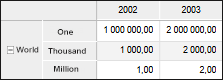 The example of cube before enabling measurement unit scaling (units dictionary is located in rows):