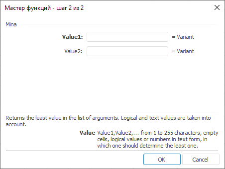Value1, Value2, …, ValueN. The range of cells minimum value of which is to be defined.