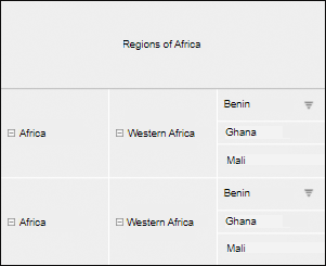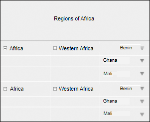 To display dimension levels in different strings without repetition of parent elements in the sidehead/heading, select the Multilevel Sidehead or the Multilevel Heading checkbox.