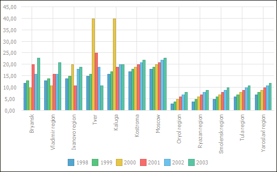 The radio button is selected by default. An area located on report sheet will be used as the chart data source: