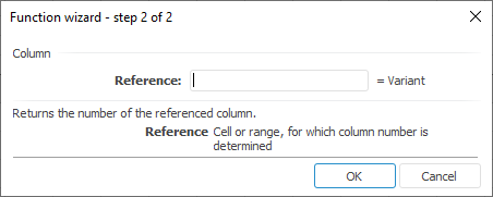 | =Column( A1:C1) | 0 | Number of the first range column. |