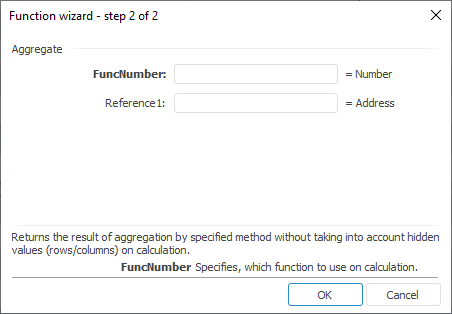 It returns result of aggregation with the specified method with a possibility to not take into account hidden values on calculation.