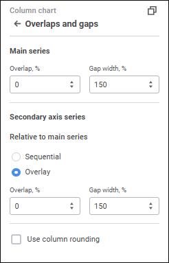 Overlaps and gaps setup can be used for adjusting the distance between series and their position relative to each other on the chart.