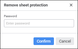 Enter the password and click the Confirm button. If the password was correct, sheet protection is removed, and the user can execute all operations with the sheet.