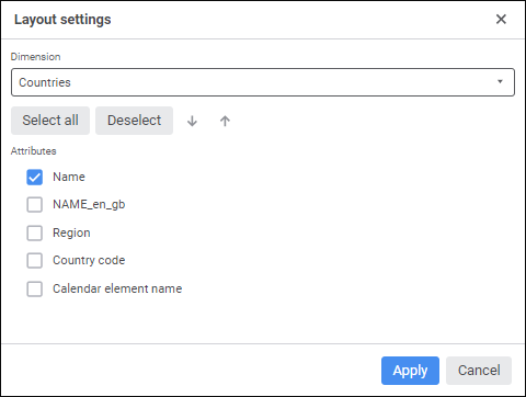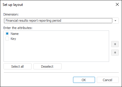 Select the Set Up Layout item in the drop-down menu of the Names item located in the dimension's context menu in table heading or sidehead. The Layout Settings dialog box opens.
