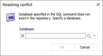 On the Conflicts tab the Show in Object Navigator context menu item is available for repository objects. The command shows the selected object in the repository object navigator. On an attempt to go to the object that is missing in the repository, the system informs that the object is not found.