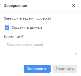 Комментарий. Введите комментарий к завершению/согласованию шага.