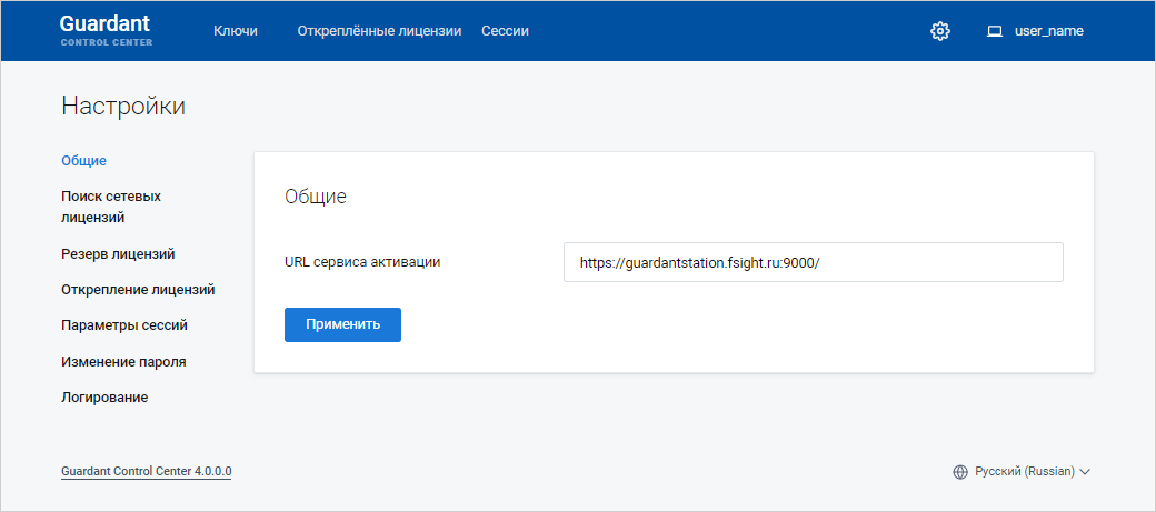 Укажите адрес Guardant Control Center в строке браузера: