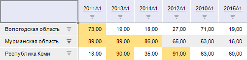 Заливка. Установите флажок для задания настроек заливки в ячейках с форматируемыми значениями. Задайте режим заливки: