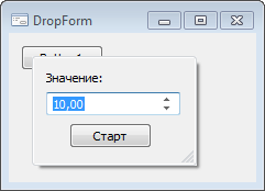 Для разворачивания формы из прикладного кода используется метод DropDown. Вид окна, в котором отображается развернутая форма, зависит от значения свойства BorderStyle формы, подключенной в компоненте. Если свойству установлено значение FormBorderStyle.None, то форма отображается в окне без рамки. При всех других значениях форма будет отображаться в окне с рамкой. Если свойству BorderStyle установлено значение FormBorderStyle.Sizeable, то также будет возможность изменить размер окна.
