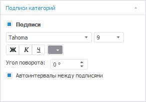 Для настройки параметров подписей категорий установите флажок «Подписи» и задайте: