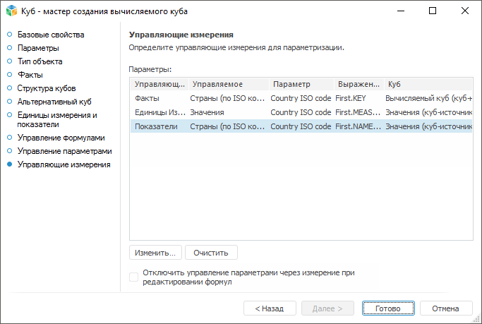 Совет. Если куб используется в качестве показателя в форме ввода, имеет параметризованные измерения и необходимо управление этими измерениями с помощью других измерений куба, то для куба нужно использовать данную настройку.