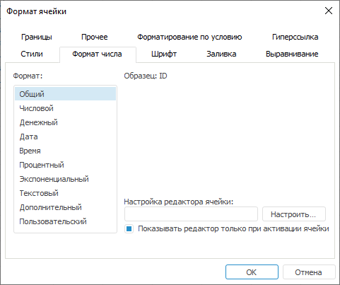 После выполнения одного из действий будет открыт диалог «Формат ячейки»:
