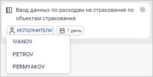Доступен выбор только одного пользователя из списка ответственных за выполнение шага.