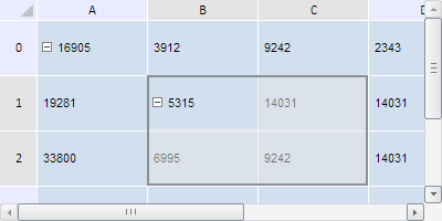 // Получим диапазон ячеек по заданным координатам var range = tabSheet.getRange(1, 2, 2, 1); // Добавим экспандер по заданному диапазону var expander = tabSheet.addExpander(range, false, false); // Развернём диапазон tabSheet.getExpanderUnderCoord(expander.getCoord()).setIsCollapsed(false); // Выделим расширяемый диапазон tabSheet.select(range); // Увеличим размеры таблицы tabSheet.setSize(400, 200); // Обновим таблицу tabSheet.rerender();