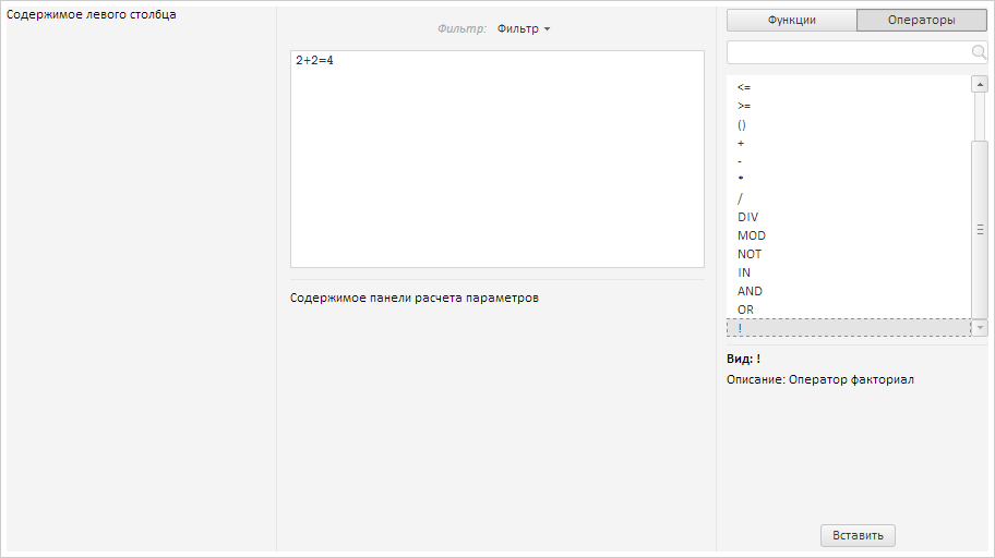 Для выполнения примера предполагается наличие на странице компонента FormulaEditor с наименованием «formulaEditor» (см. «Пример создания компонента FormulaEditor»). Пример нужно разместить в теге <script>. Получим список исходных операторов:
