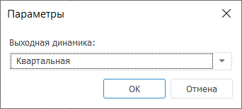В раскрывающемся списке «Выходная динамика» укажите выходную динамику ряда. Доступны только динамики, которые больше динамики ряда, для которого применяется метод. Например, если агрегация рассчитывается для ряда с квартальной динамикой, то в раскрывающемся списке «Выходная динамика» будут доступны варианты «Годовая» и «Полугодовая».