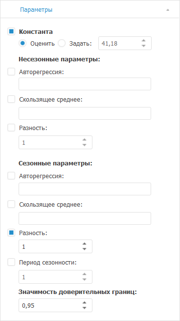 Моделирует значения ряда методом «ARIMA». Входит в группу «Прогноз».