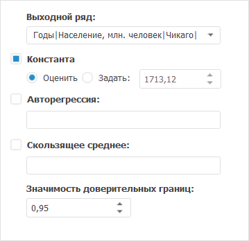 После применения метода в таблицу данных будет добавлен ряд с наименованием вида «Линейная регрессия(<Список_Объясняющих_Рядов>)», содержащий результаты расчета. Например: