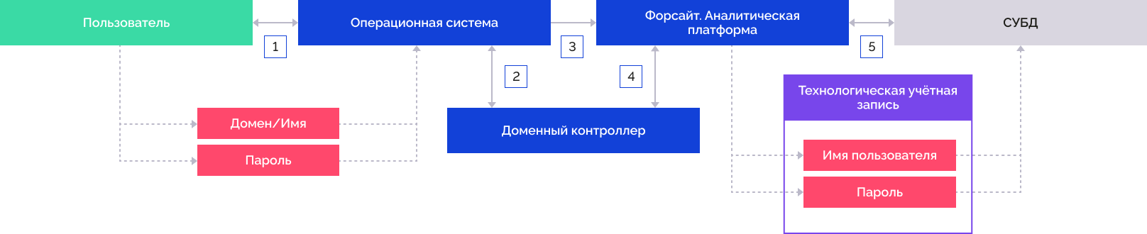 1. «Форсайт. Аналитическая платформа» передаёт указанные учётные данные в операционную систему.