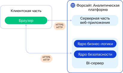 При разработке системы на базе веб-приложения продукта «Форсайт. Аналитическая платформа» в контуре разработки или тестирования доступно два способа взаимодействия браузера с BI-сервером: