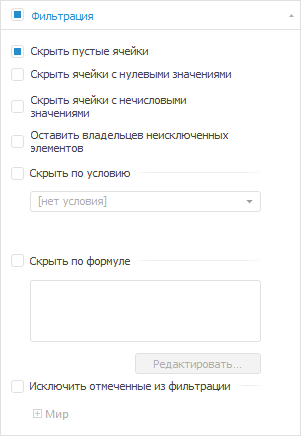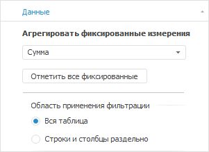 Исключить отмеченные из фильтрации. Будут скрыты выбранные элементы измерения. Настройка доступна при раздельной фильтрации строк и столбцов.