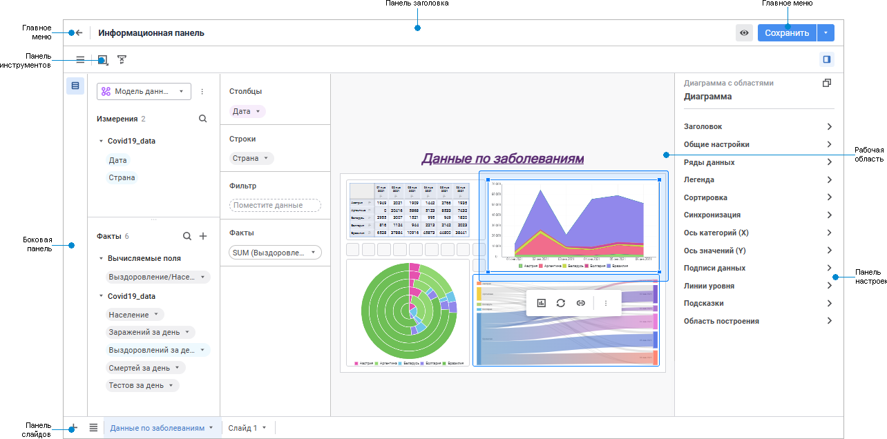 Для работы с готовой информационной панелью смотрите статью «Работа с готовой информационной панелью».