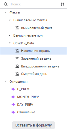 Добавленные отношения доступны для настройки вычисляемых фактов.