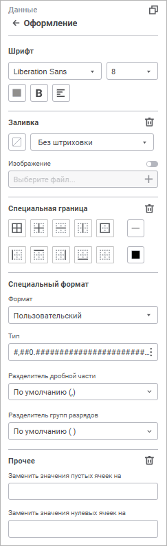 Примечание. Если для полей, участвующих в построении таблицы, были заданы настройки формата данных, то эти настройки будут отображены в группе настроек «Специальный формат».