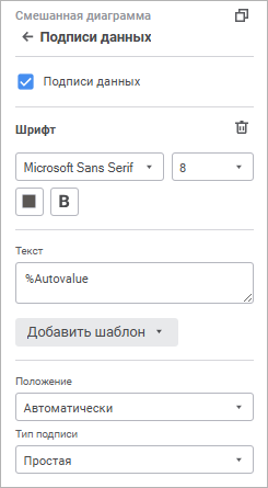 Для настройки подписей данных используйте группу параметров «Подписи данных» панели настроек.