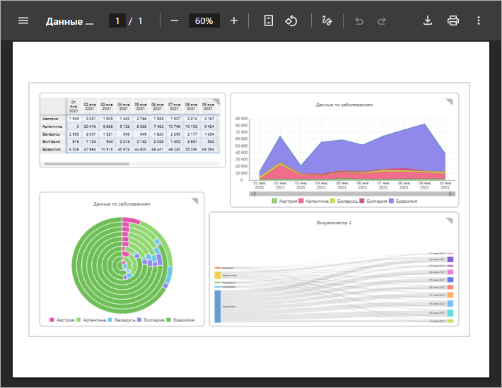 Для печати выбранного визуализатора: