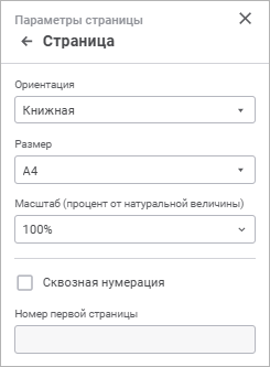 Для настройки общих параметров страницы используйте группу параметров «Страница» панели параметров: