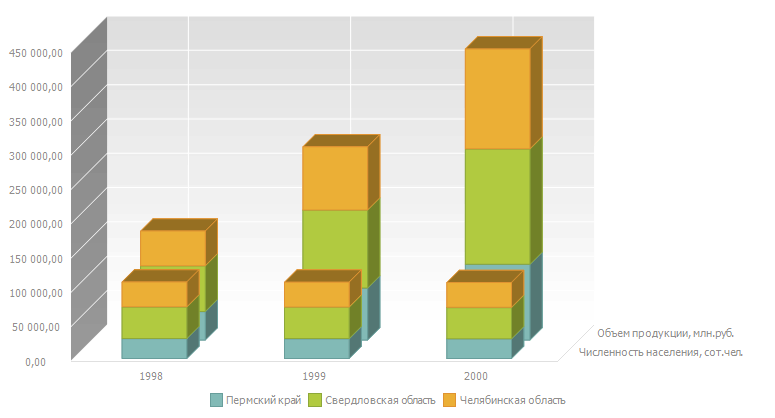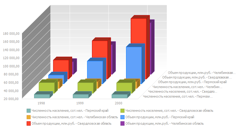 Рассмотрим пример построения объемной гистограммы с группами. Исходными данными являются «Социально-экономические показатели регионов»:
