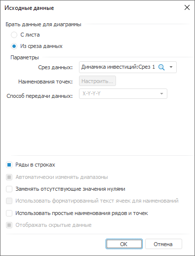 Выберите срез «Динамика инвестиций: Срез 1» в раскрывающемся списке «Срез данных».