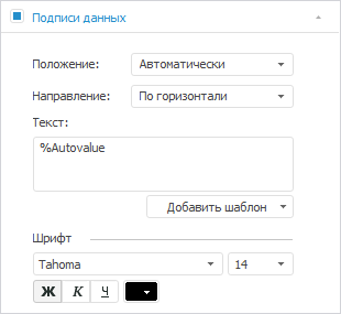 Настройте шрифт подписей данных: размер шрифта - 14, начертание - полужирное, цвет - 0 0 0 в формате RGB: