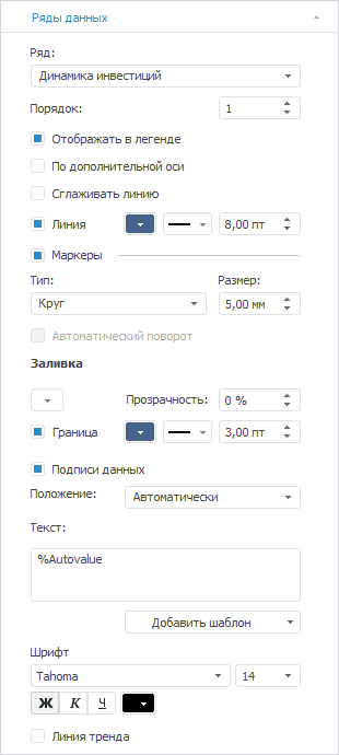 Выберите ряд «Динамика инвестиций» в раскрывающемся списке «Ряд».