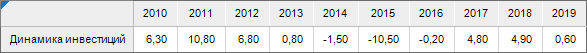 Срез данных куба «Динамика инвестиций» в виде таблицы имеет вид:
