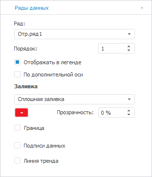 Выберите ряд «Отр.ряд1» в раскрывающемся списке «Ряд» и задайте настройки: