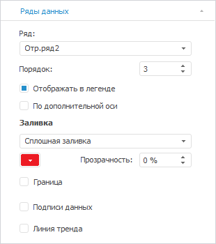 Выберите ряд «Отр.ряд2» в раскрывающемся списке «Ряд» и задайте настройки: