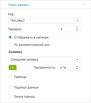Выберите ряд «Пол.ряд2» в раскрывающемся списке «Ряд» и задайте настройки:
