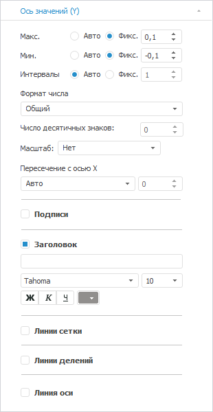 выберите способ расчёта минимального значения, установив переключатель «Фикс.», и задайте значение «-0.1»;