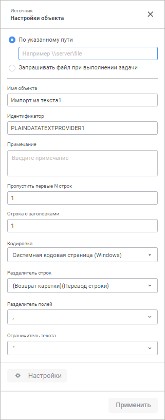 Коннектор «Текст (txt, csv)» - объект, предназначенный для извлечения данных из текстовых файлов (*.txt, *.csv).