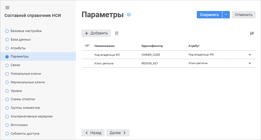 На странице «Параметры» в веб-приложении и настольном приложении возможно динамически изменять содержимое справочника. Справочники с заданными параметрами называются параметрическими.